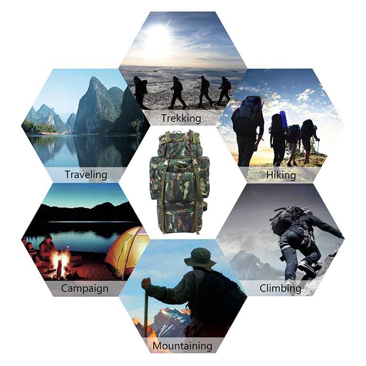 65L large capacity army military backpack travel backpack Oxford With Rain Cover for running climbing skiing