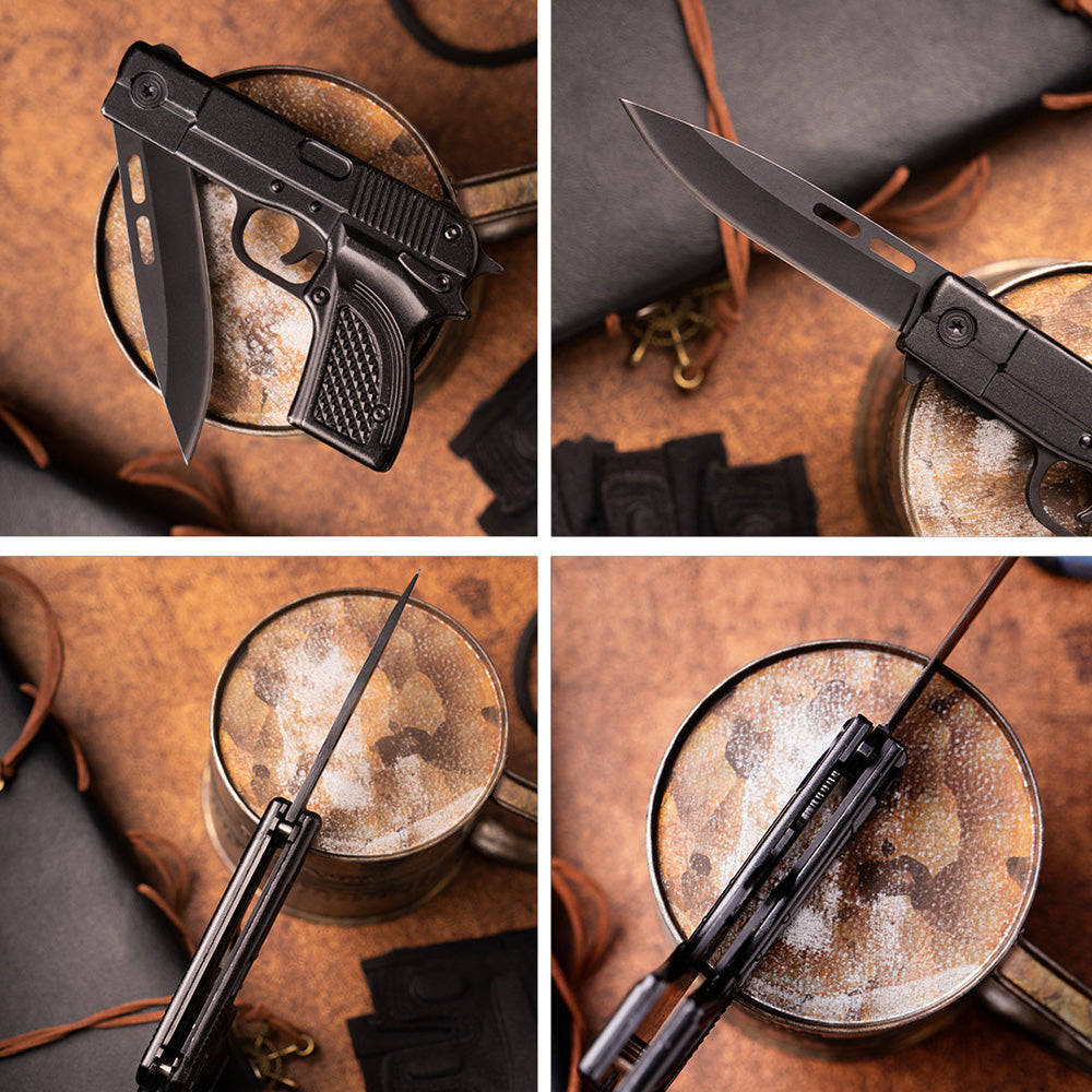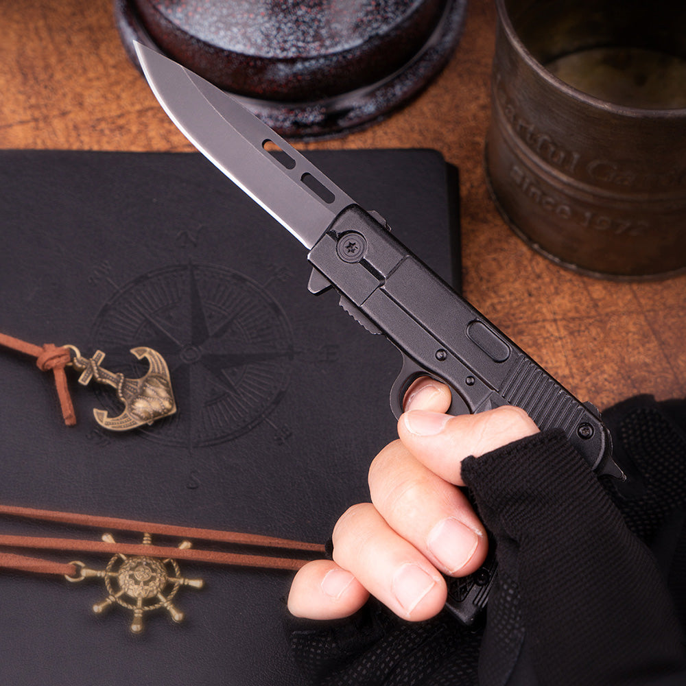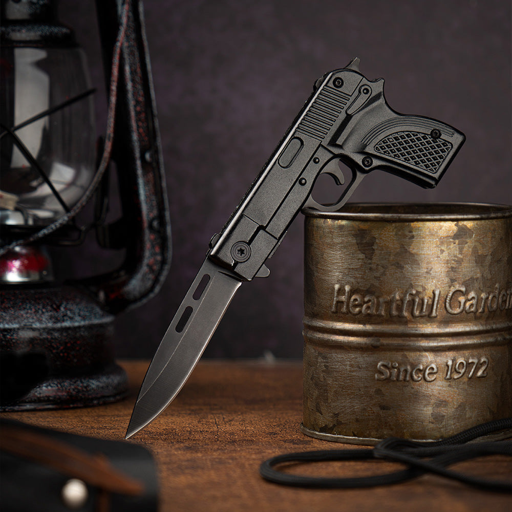 7" Tactical Pistol Replica Gun Spring OPEN Assisted Grey Pocket Knife