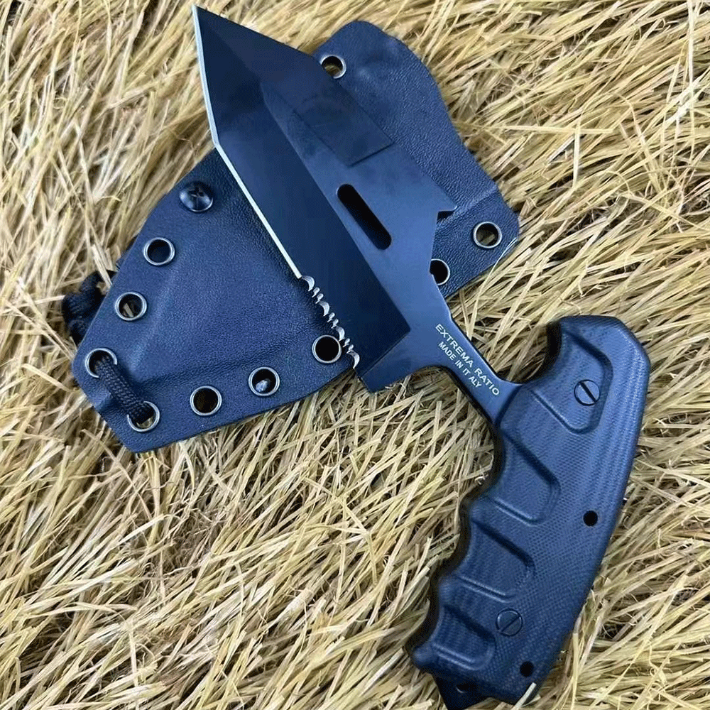 The spear-point blade offers formidable tearing power, while the double-edged design (with one false edge) reduces penetration resistance for superior cutting ability and penetration force. In close-quarters combat, this knife excels at both slashing and stabbing maneuvers.