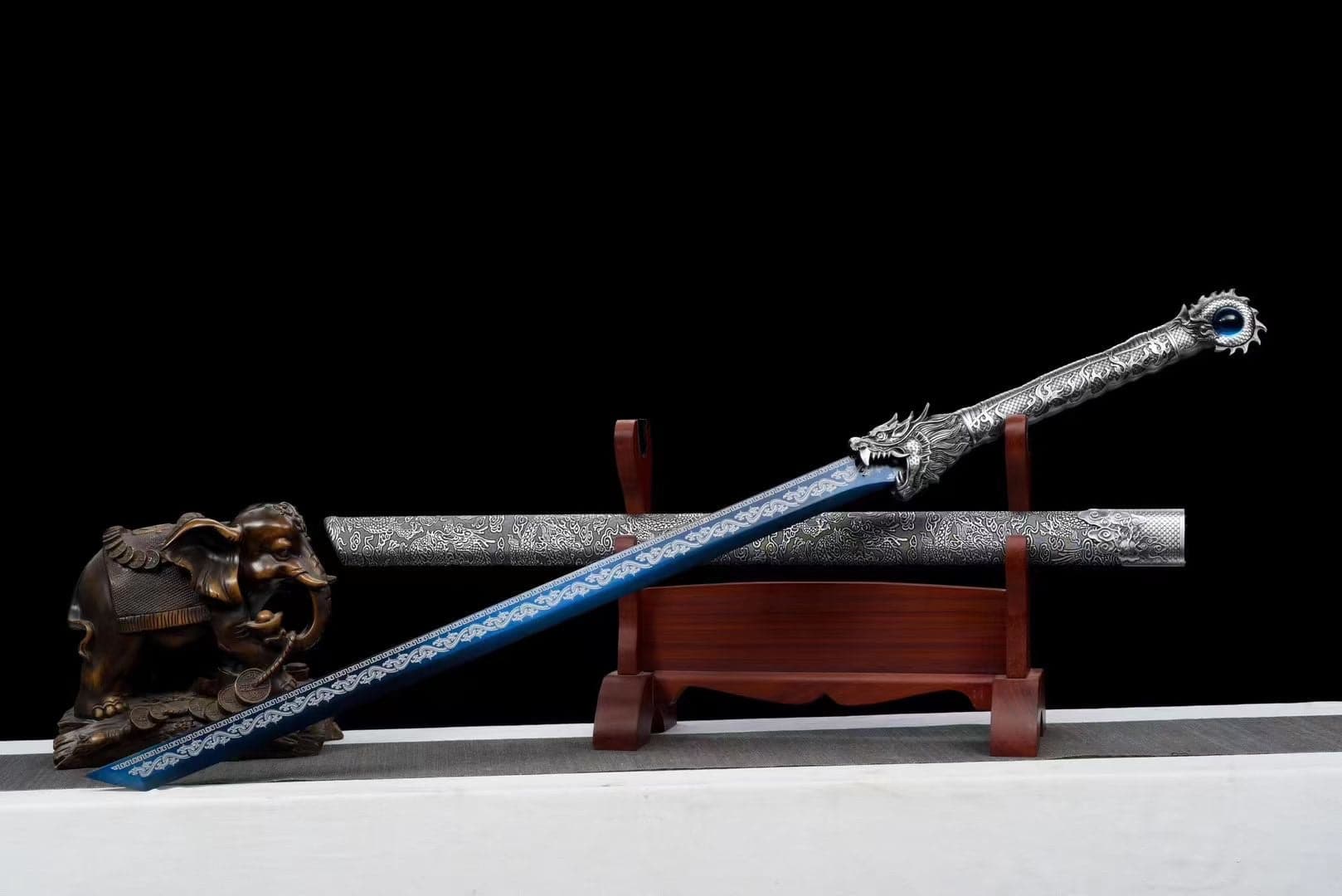 Handmade Ao Tian Manganese Steel Chinese Sword Baked blue engraving