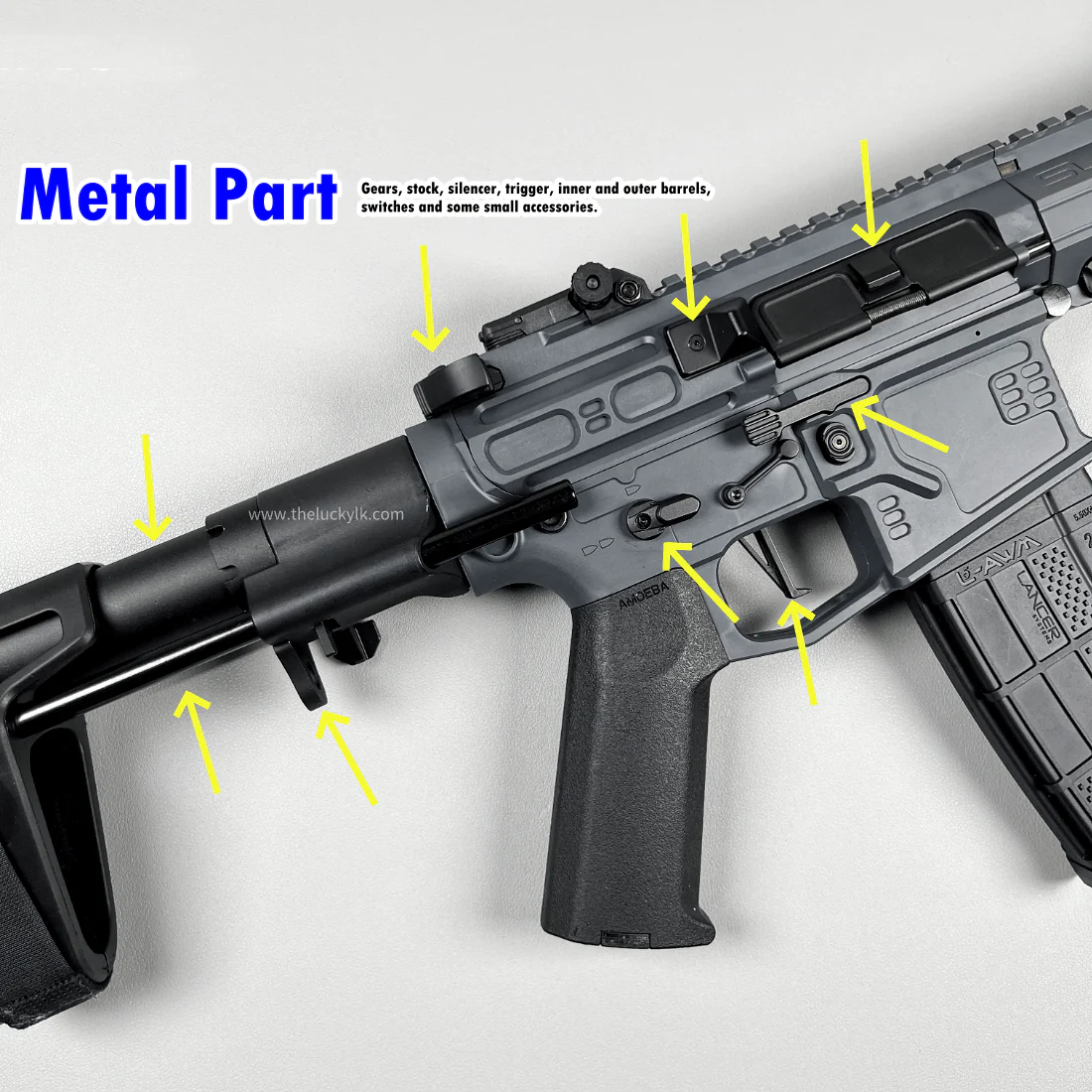 9. Materials:Metal barrels, metal gears,metal stock,barrel and some small metal parts