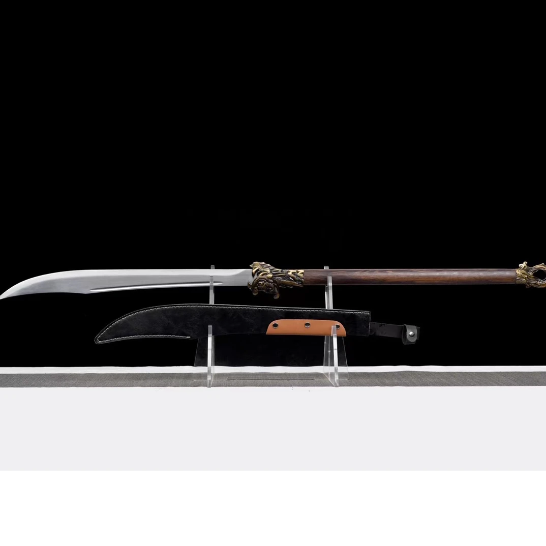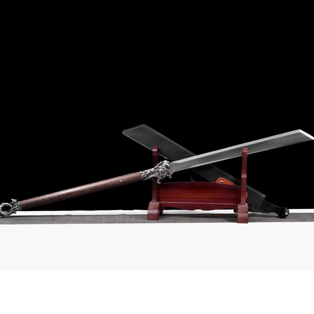The handle, crafted from beautiful rosewood, provides a comfortable grip while adding a touch of sophistication to the sword.